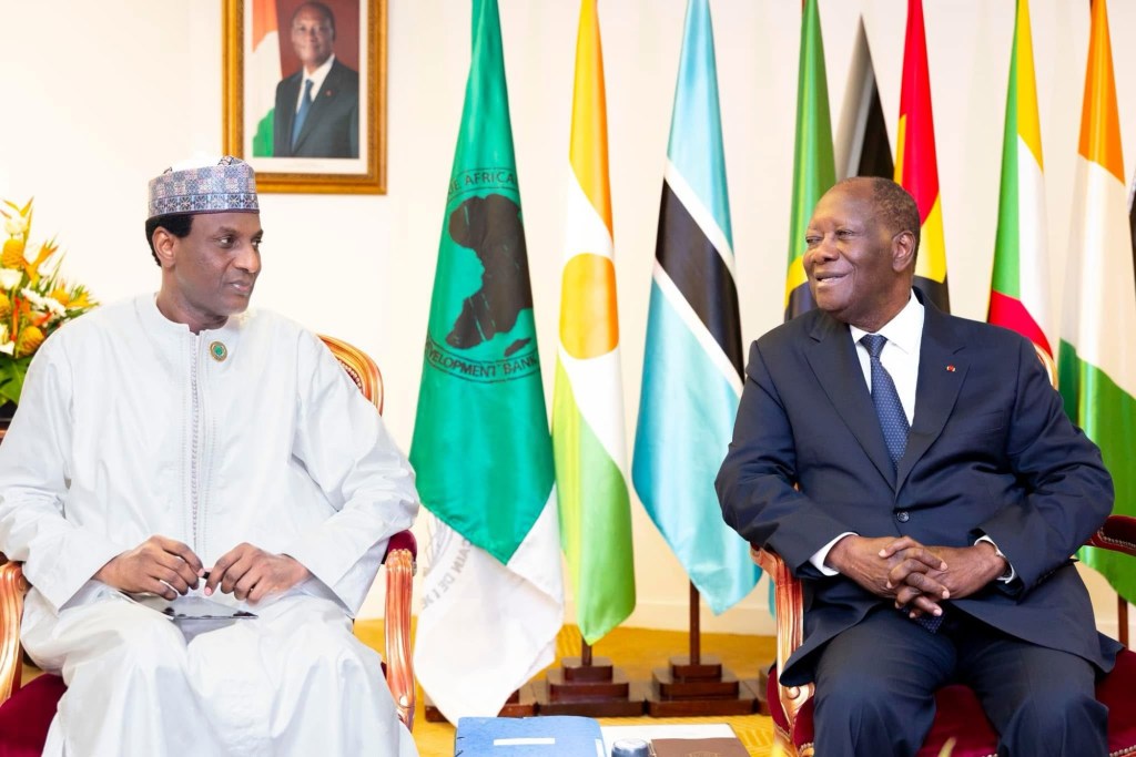 Alassane Ouattara a eu, mardi 27 mai 2025, un entretien avec le Premier ministre du Niger, Ali Lamine Zeine en marge des Assemblées annuelles 2025 de la Banque africaine de développement (BAD) à Abidjan en Côte d’Ivoire.