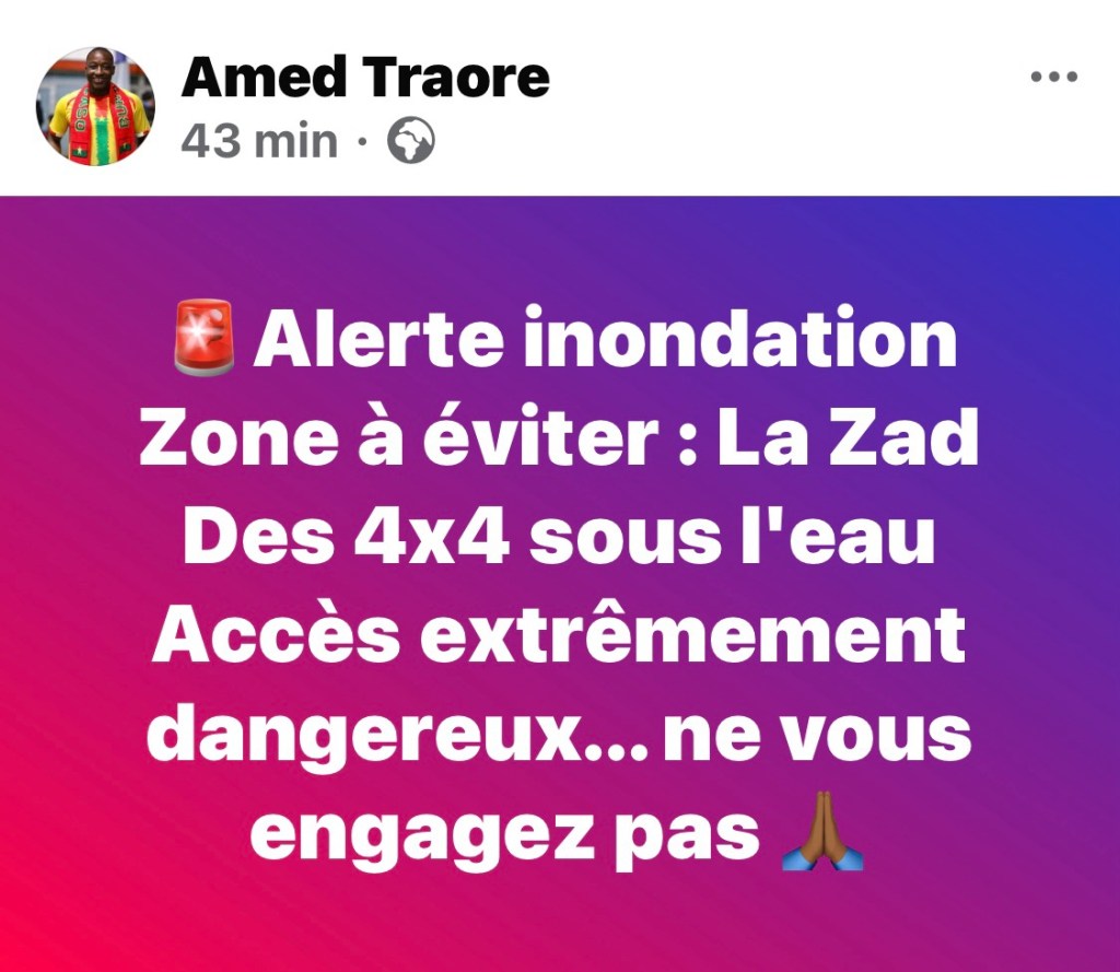 Des véhicules 4×4 et motos étaient sous les eaux, ont témoigné des riverains. Grande prudence recommandée.