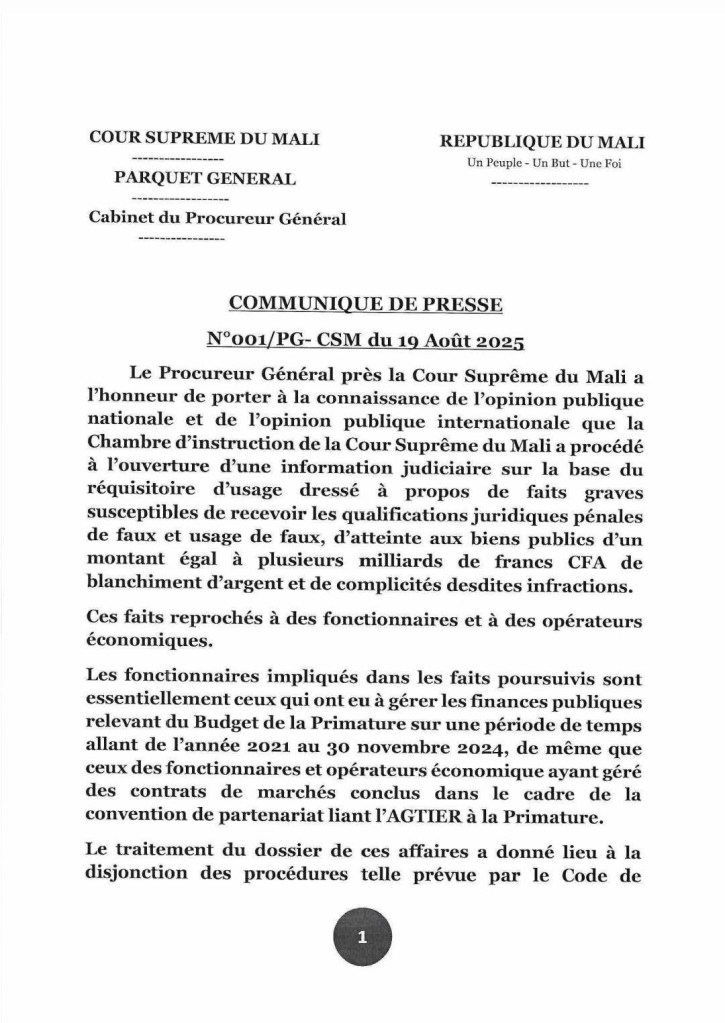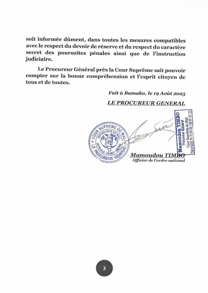 COMMUNIQUÉ SUR L’AFFAIRE CHOGUEL MAÏGA