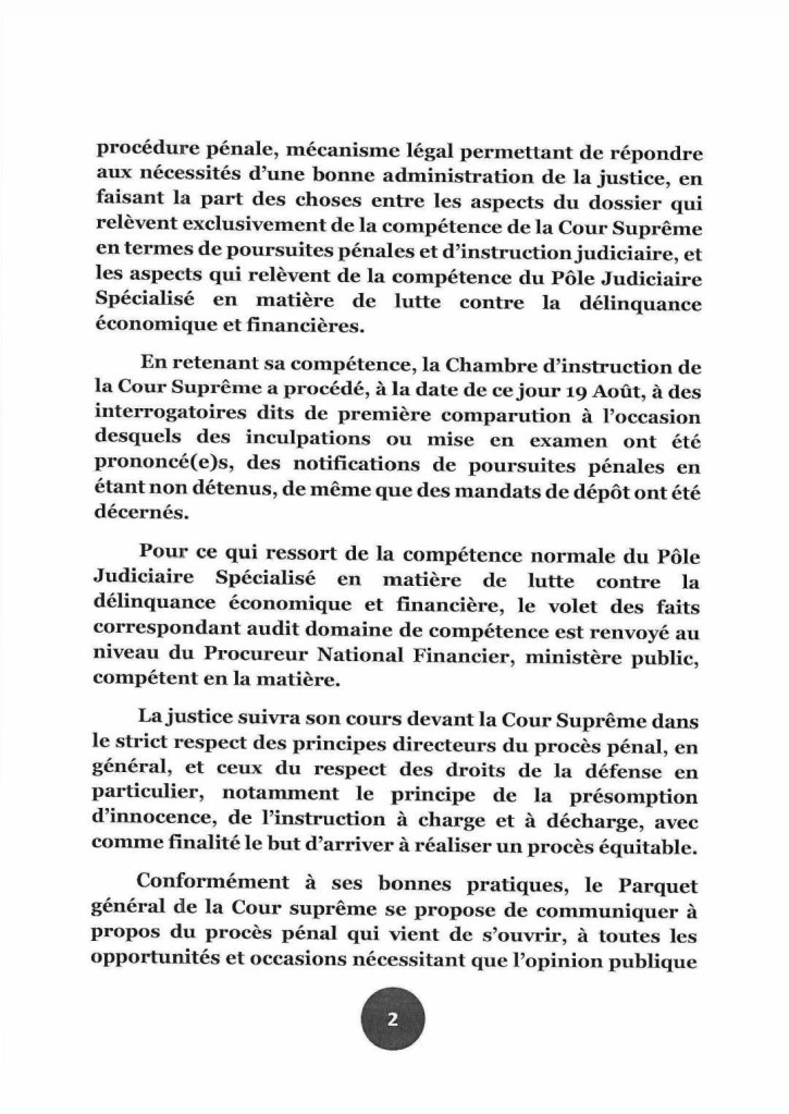 Communiqué du Procureur général près la Cour suprême