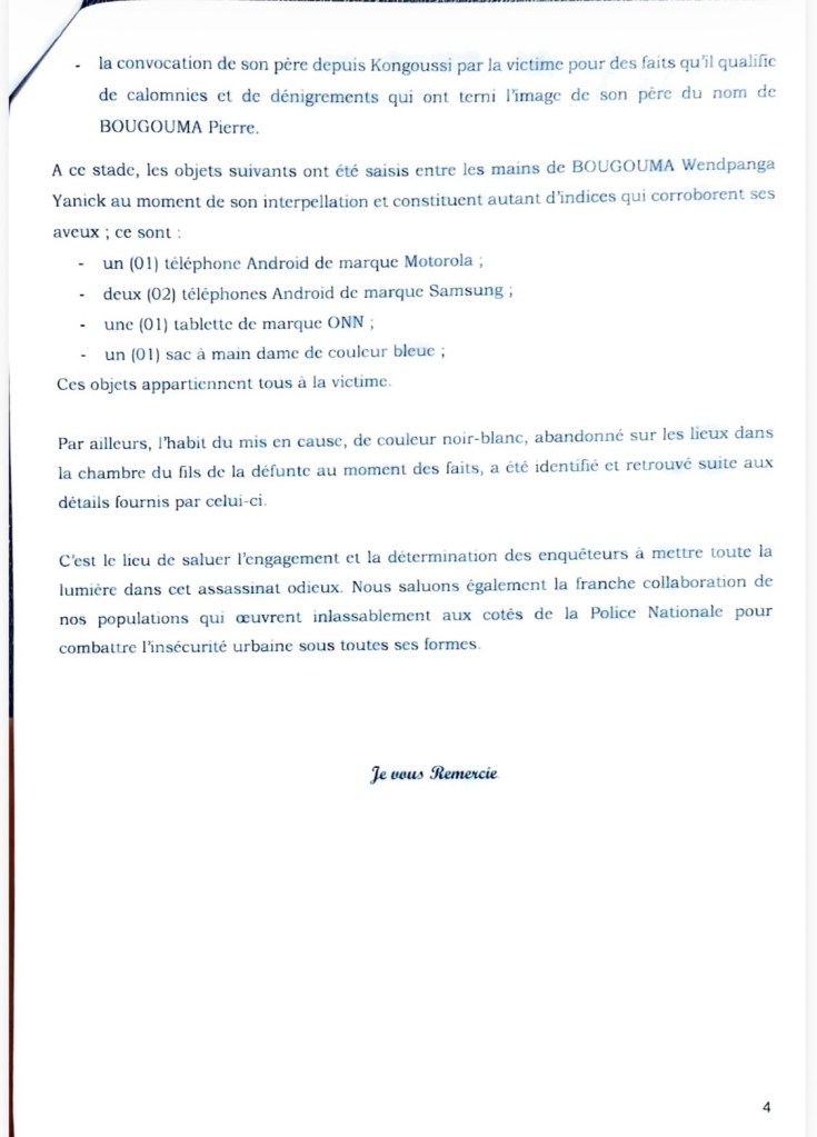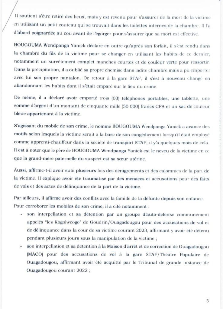 Le jeune homme affirme avoir agi par vengeance, estimant que Viviane Compaoré Ouedraogo était responsable de son licenciement et de conflits familiaux antérieurs.