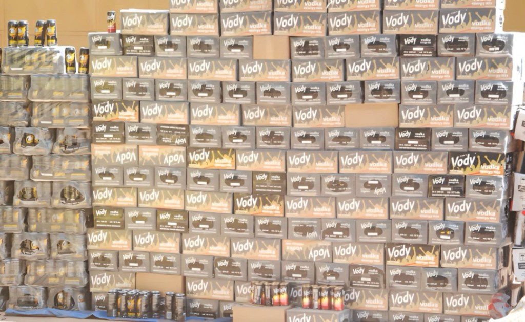 Les agents ont également intercepté plus de 300 cartons de boissons énergisantes alcoolisées de marque « Voddy Vodka Energy mix », ainsi que des liqueurs en sachet.