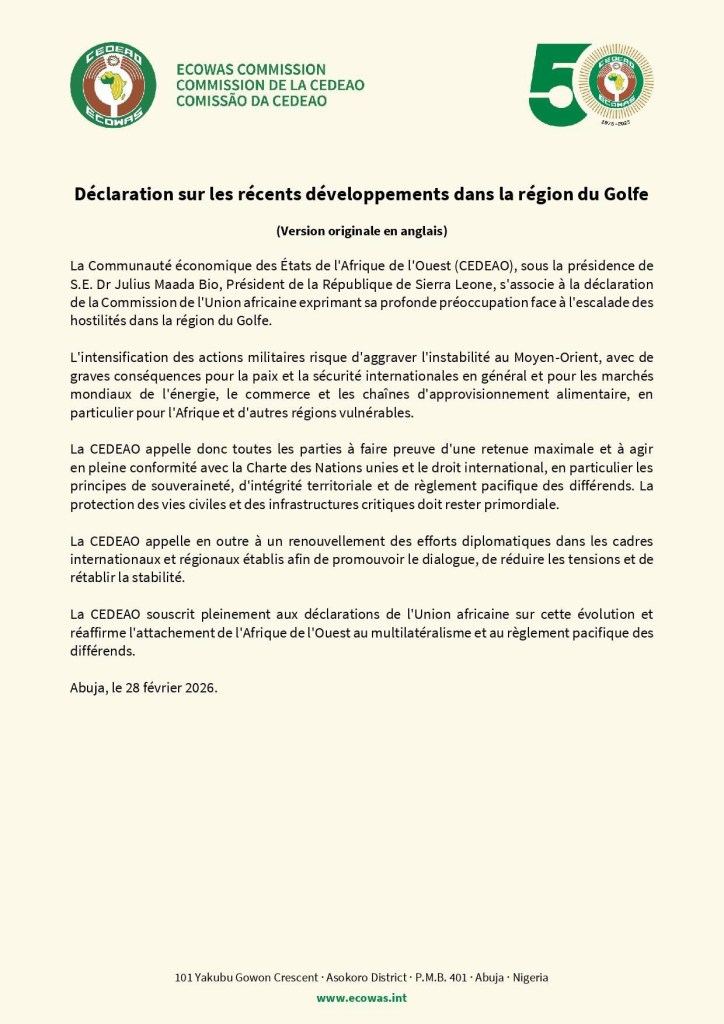 L’intégralité du communiqué de la Cedeao