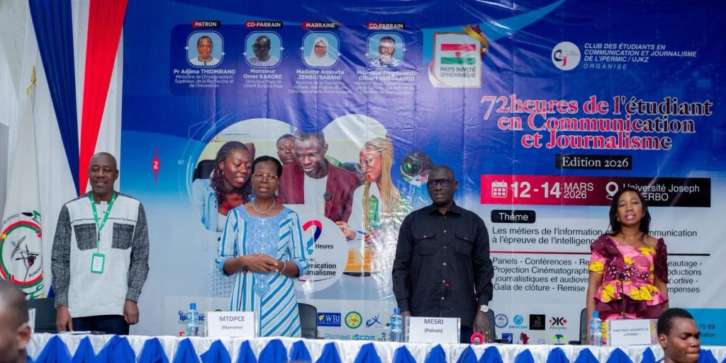 Les 72 heures des étudiants en journalisme et communication de l’Institut panafricain d’étude et de recherche sur les médias, l’information et la communication (IPERMIC) ont été officiellement lancées à l’Université Joseph Ki-Zerbo ce jeudi 12 mars 2026. Cette activité, organisée par le Club des étudiants en communication et journalisme, se tient cette année autour du thème : « Les métiers de l’information et de la communication à l’épreuve de l’intelligence artificielle ».