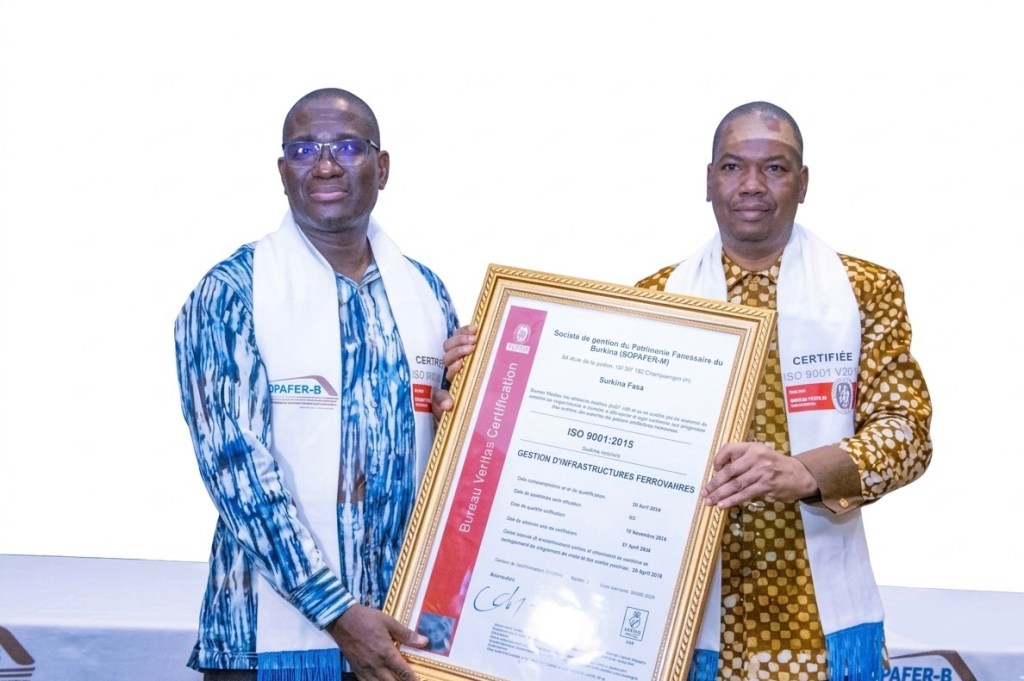 La Société de Gestion du Patrimoine Ferroviaire du Burkina (SOPAFER-B) est désormais certifiée ISO 9001 version 2015 dans le domaine « Gestion d’infrastructures ferroviaires ».